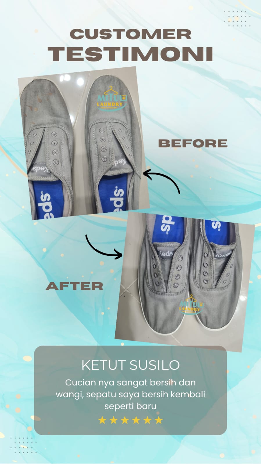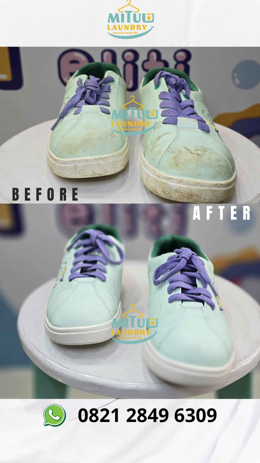 Pertama kali coba di mituu laundry, ga expect ternyata hasilnya bersih dan wangi. apalagi di spotting jika ada noda. Thanks Mituu Laundry